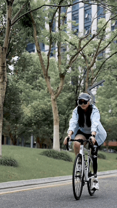 残障人士穿戴智能仿生腿在杭州街头骑车。新华网发 强脑科技供图