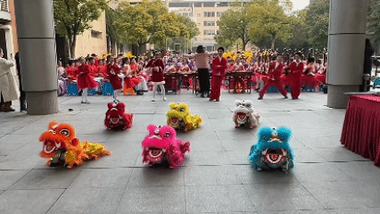杭州江南实验学校,机器狗在开学当日为学生表演“舞狮”。新华网发 杭州市滨江区委宣传部供图