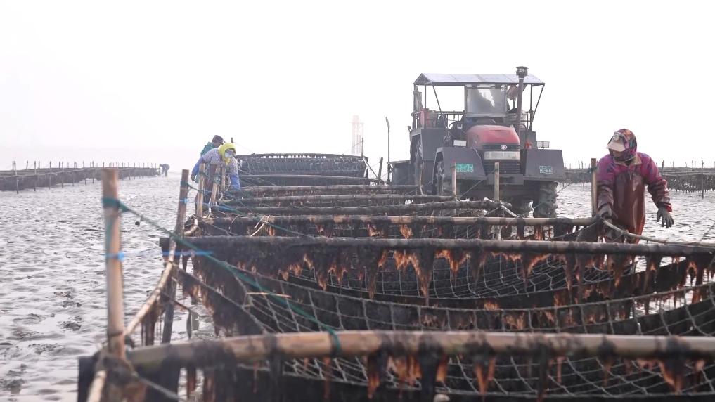 眼下,江苏如东正值“海上春耕”,条斑紫菜收获正忙,工人们趁着晴好天气,抓紧采摘。