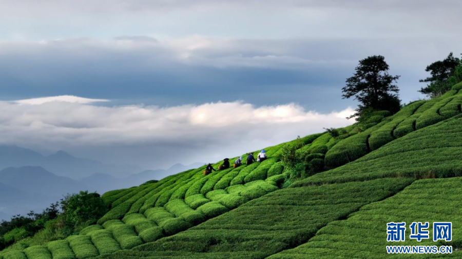 村民在西白山村采摘茶叶。新华网发