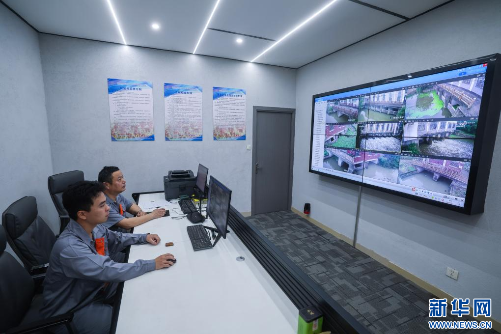 6月11日,嘉兴市南湖区大桥镇十八里圩区运维人员在夏义港泵站控制中心查看实时监控画面,及时发现并消除安全隐患。