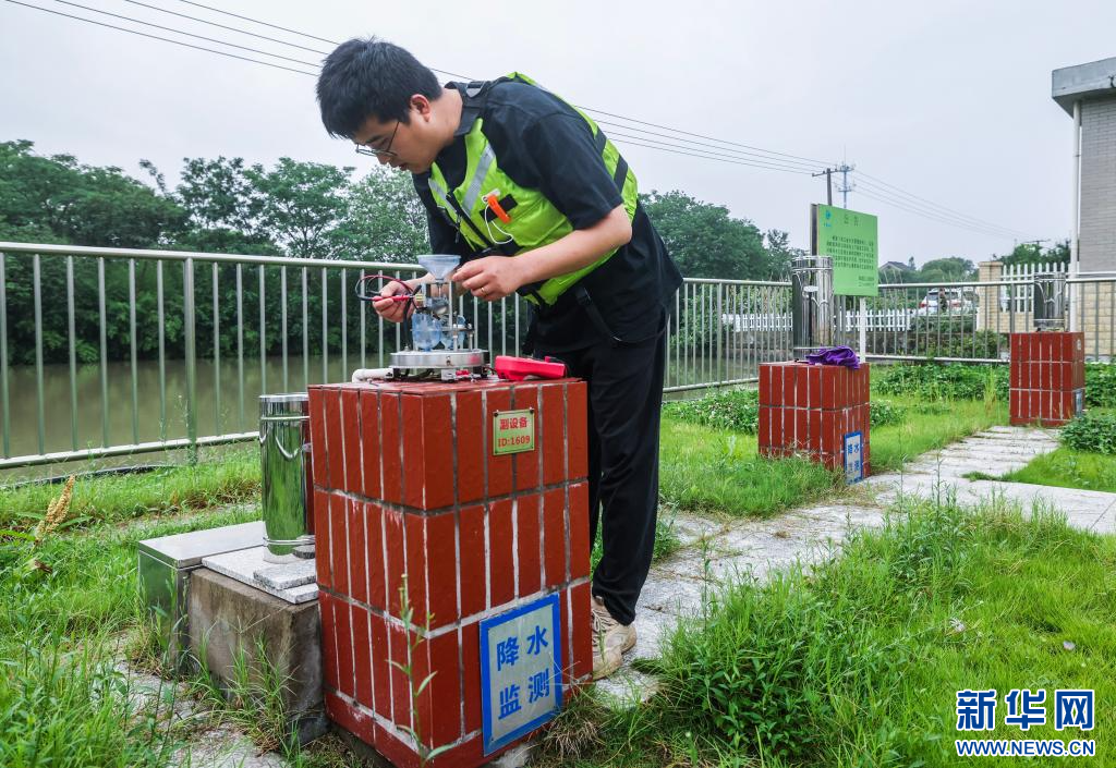 6月11日,嘉兴市南湖区余新镇水位站工作人员调试水位监测设备,确保本轮强降雨期间数据实时回传至防汛指挥系统。