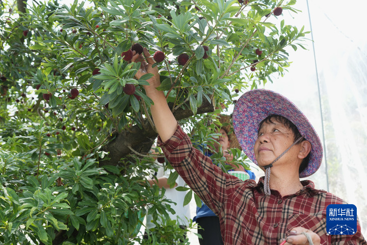 近日,浙江省台州市黄岩区东魁杨梅进入集中采摘期。黄岩全区目前东魁杨梅种植面积5.6万亩,年产量3.9万吨,产值4.7亿元。东魁杨梅发源于黄岩东魁村,以果大味甜著称,作为优质杨梅品种已被引种至全国各地。