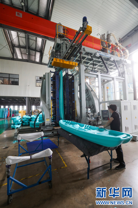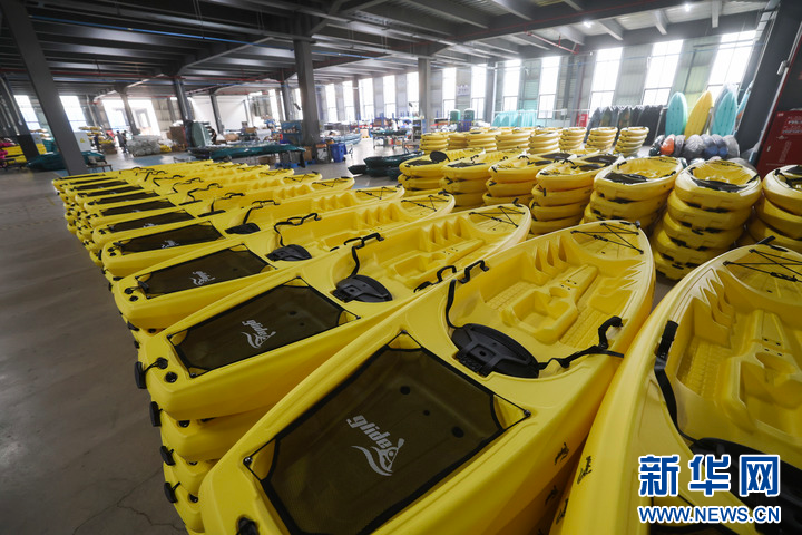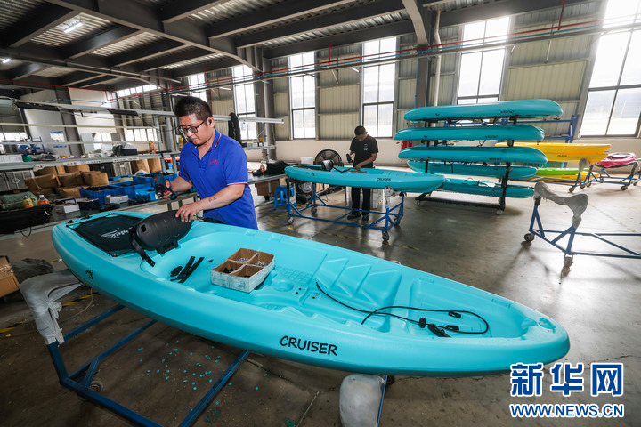 6月25日,在位于慈溪市的浙江酷尔智能科技有限公司的车间内,工人在加工出口的皮划艇。