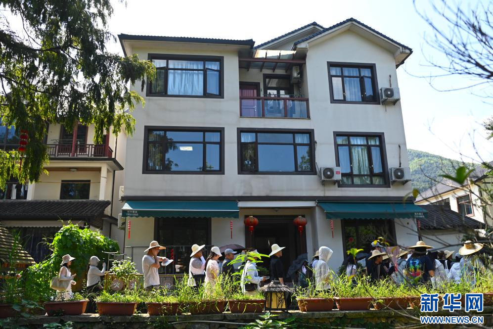 8月5日,在浙江省杭州市余杭区径山村,游客经过一家低碳民宿。