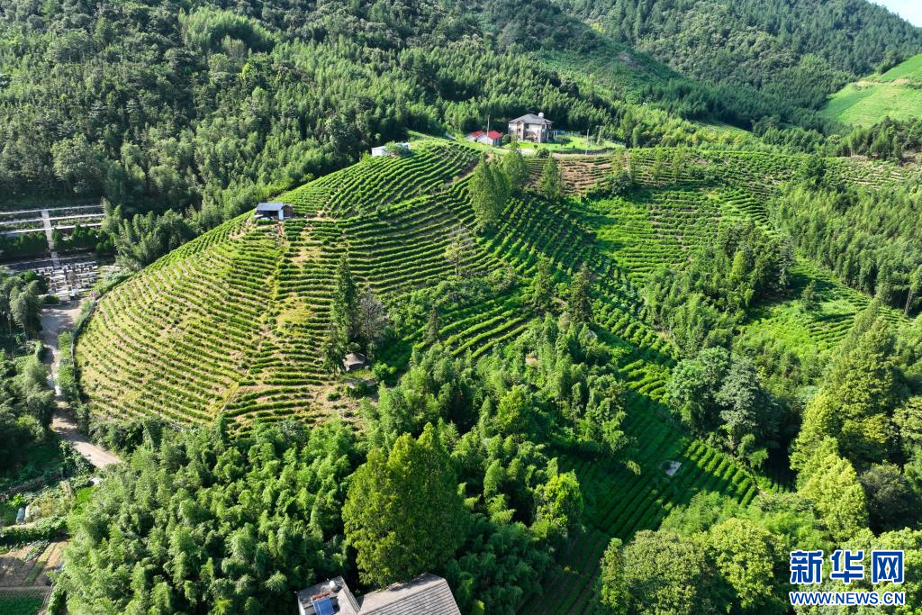 这是8月5日拍摄的浙江省杭州市余杭区径山村茶山(无人机照片)。