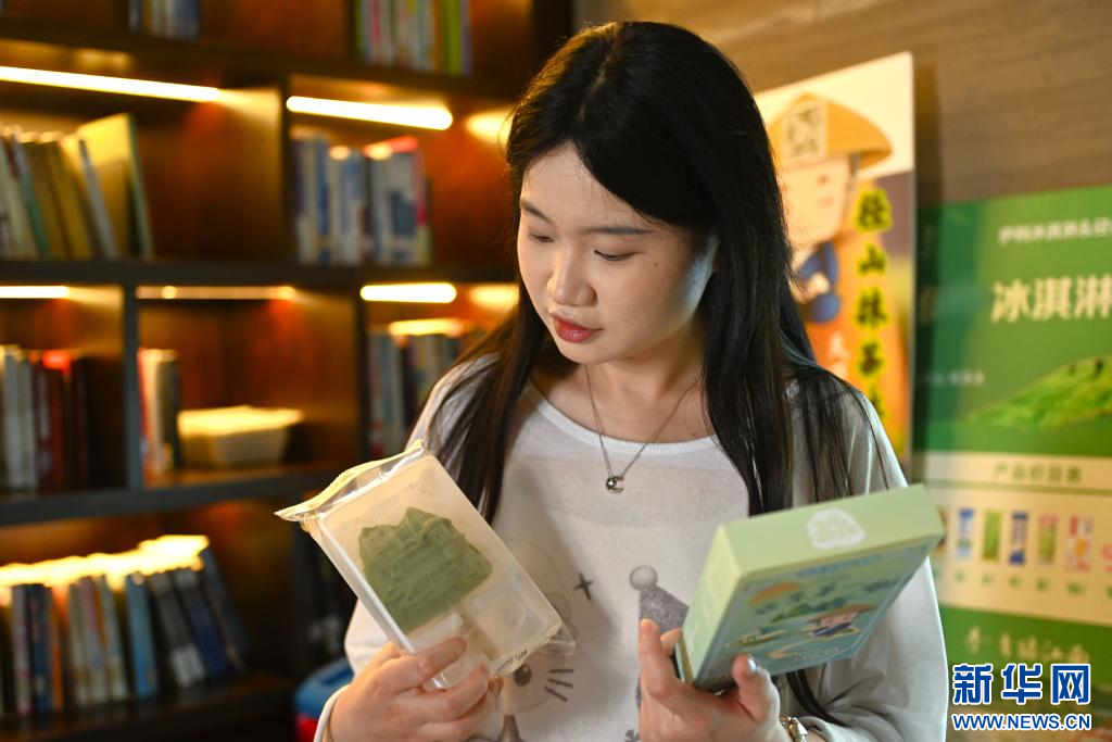 8月5日,在浙江省杭州市余杭区径山村,一名游客购买径山茶文创雪糕。