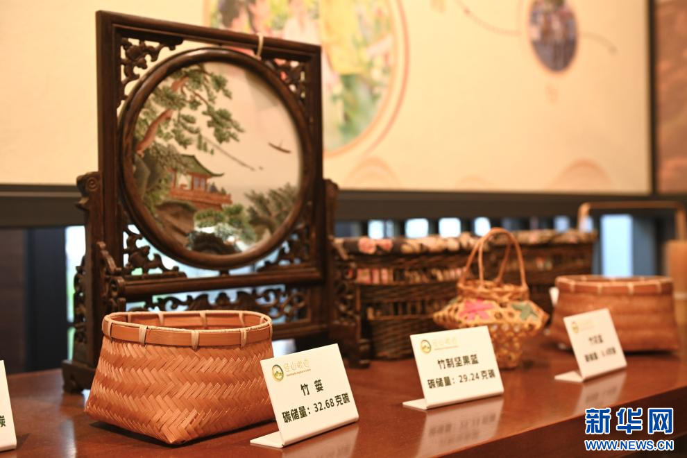 这是8月5日在浙江省杭州市余杭区径山村拍摄的“以竹代塑”文创产品。