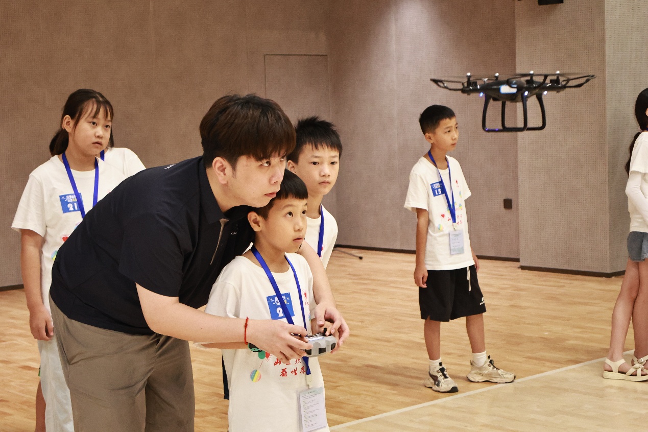在浙江重隼智能科技有限公司,孩子们聆听了无人机科普讲座,并参观了无人机展区。从无人机的构造原理到实际应用,每一个细节都激发着孩子们的好奇心与求知欲。而在室内篮球馆内,在浙江十子鹰飞行科技有限公司专业教练的指导下,孩子们沉浸式体验操控无人机,感受了翱翔蓝天的自由与快乐。