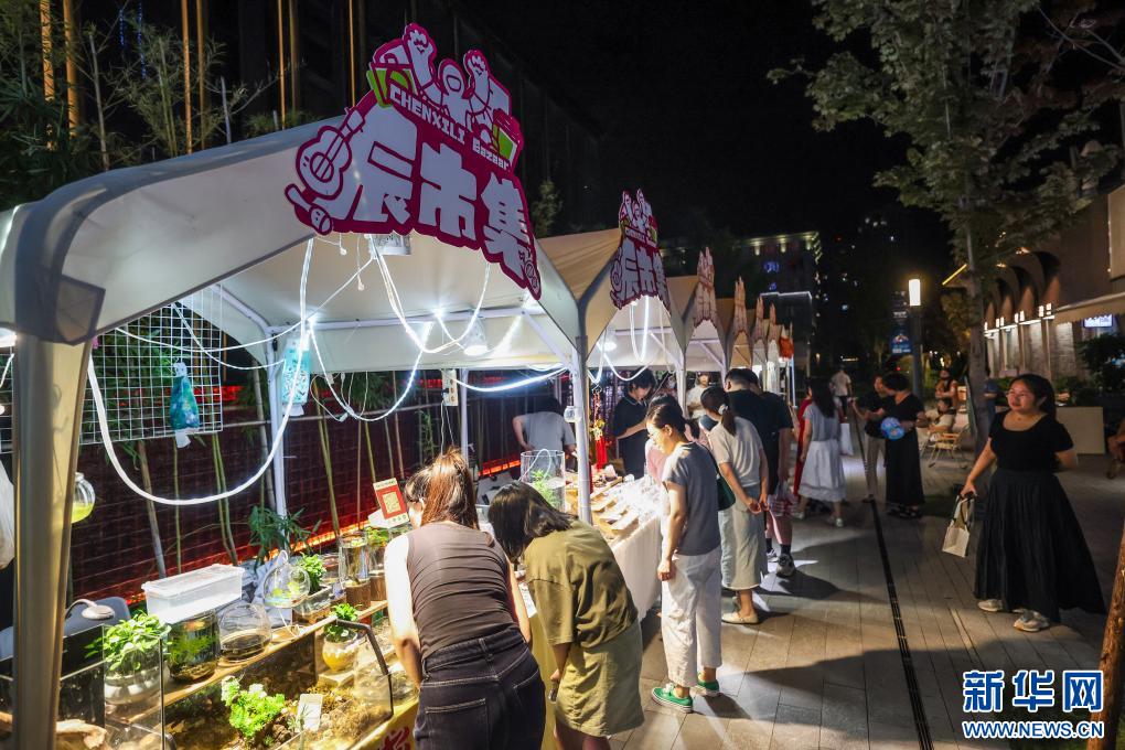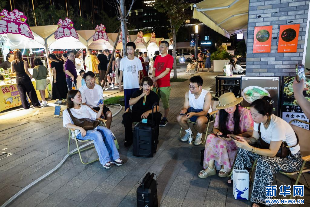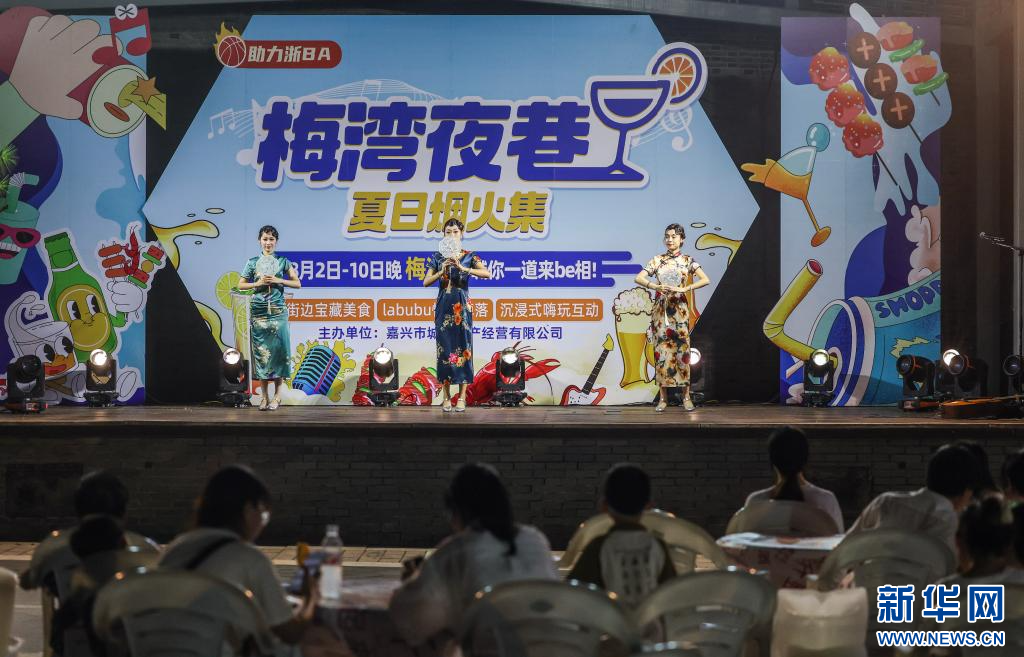 近期,浙江省嘉兴市南湖区各大商圈和历史街区全域铺开夜经济活力场景,联合酒店、商场以及众多餐饮商户开展各具特色的夏日烟火集,通过举办特色市集、小吃排挡、露天音乐会、游戏互动等活动,吸引市民走出家门,感受夏日活力。新华社记者 徐昱 摄