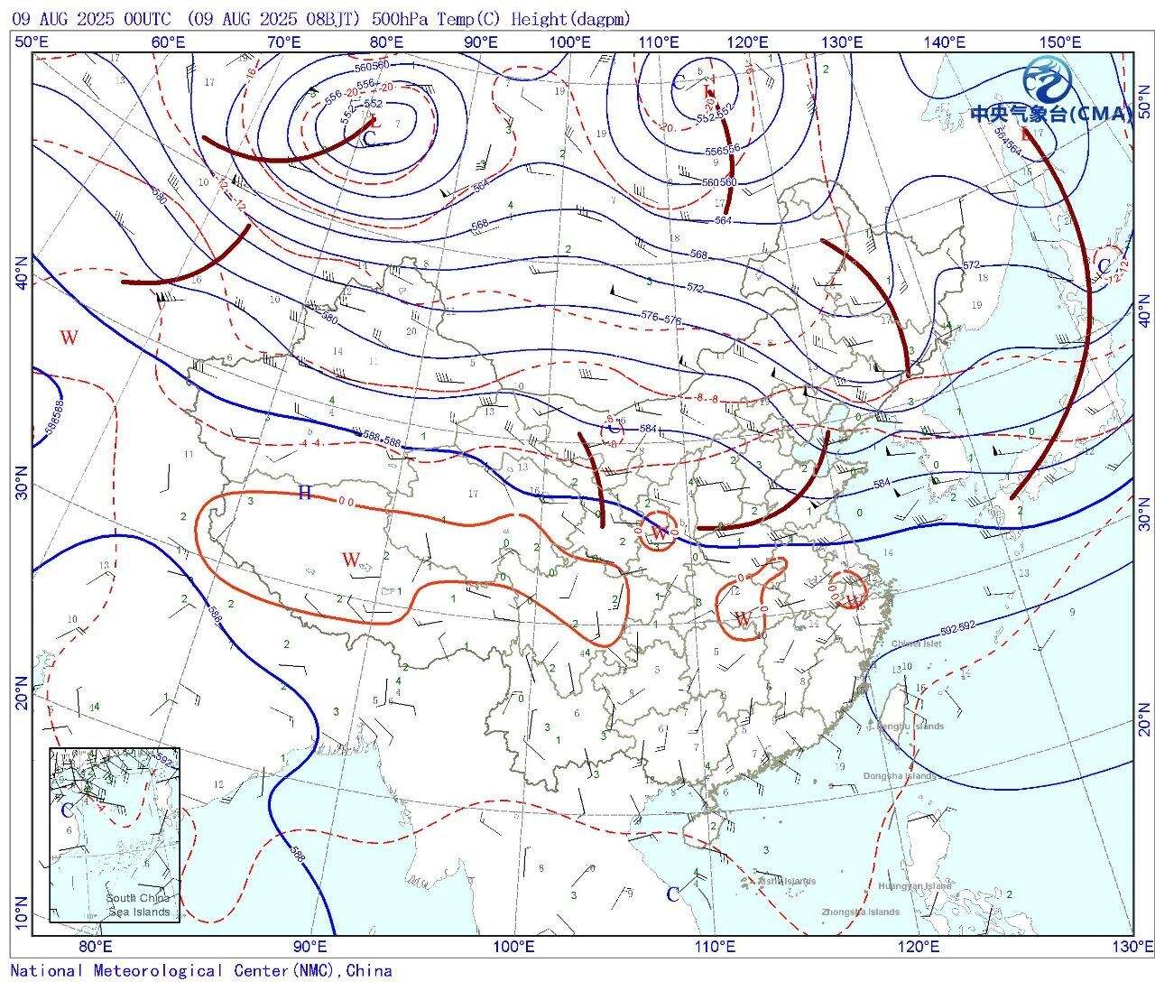 近期持续的高温天气,为“日晕”的出现创造理想的条件。从天气形势图看确实如此,副热带高压呈东西向“坝状”分布,牢牢掌控着我国南方地区,仿佛为这些地方布下一个“结界”,南方人民因此处于高温“炙烤”中。
