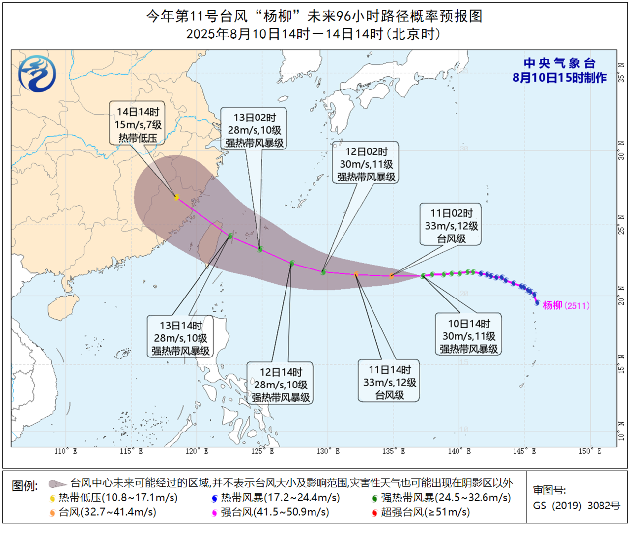 “杨柳”是否登陆我国,现在还存在较大的变数。一要看台风本身的强度,二要看副热带高压的强度和位置。未来有两种可能性:一是可能在东海或台湾海峡减弱消失;另一种可能是:13日上午进入东海东南部海域,14日上午在浙闽一带沿海登陆(热带低压或热带风暴级),对东海南部和浙江省沿海有一定的风雨影响。