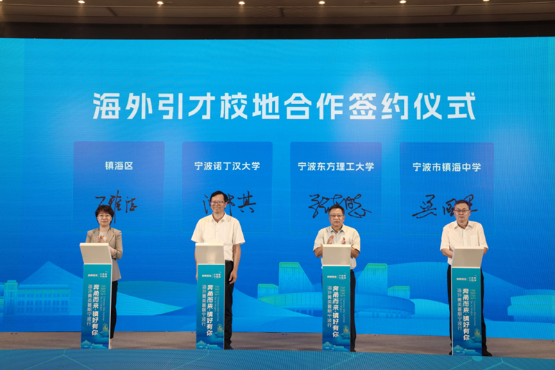 会上,宁波·镇海留学人员创新创业服务联盟成立,聘请留学人员创新创业导师和城市引才合伙人;镇海区与宁波诺丁汉大学、宁波东方理工大学、镇海中学进行海外引才校地合作签约,并设立“海外引才工作站”,共同推进“留学回国人才可持续发展教育平台”建设。