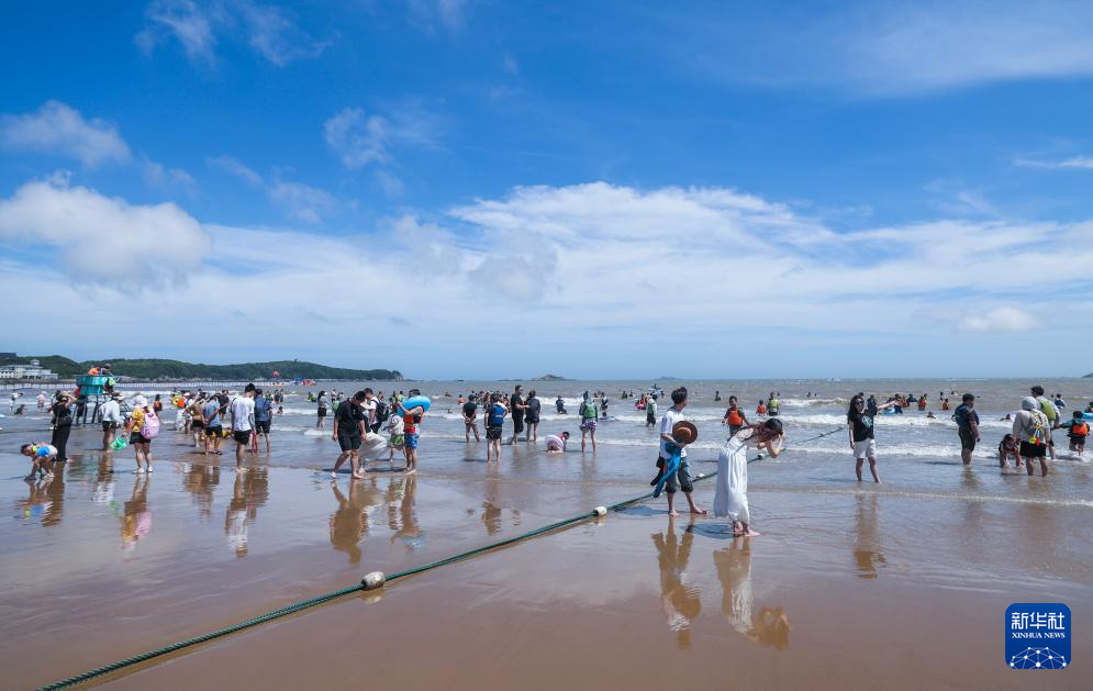 近期,地处东海之滨的浙江省舟山市朱家尖南沙景区迎来了暑期“游客潮”,日均游客量约2万人次。为全面提升游客体验感,朱家尖南沙景区推出夏日特色海滨系列活动,包括舟山国际沙雕节、东海音乐营沙滩趴、夜泳、风帆游船等项目,让来自各地的游客充分感受东海之滨的夏日魅力。