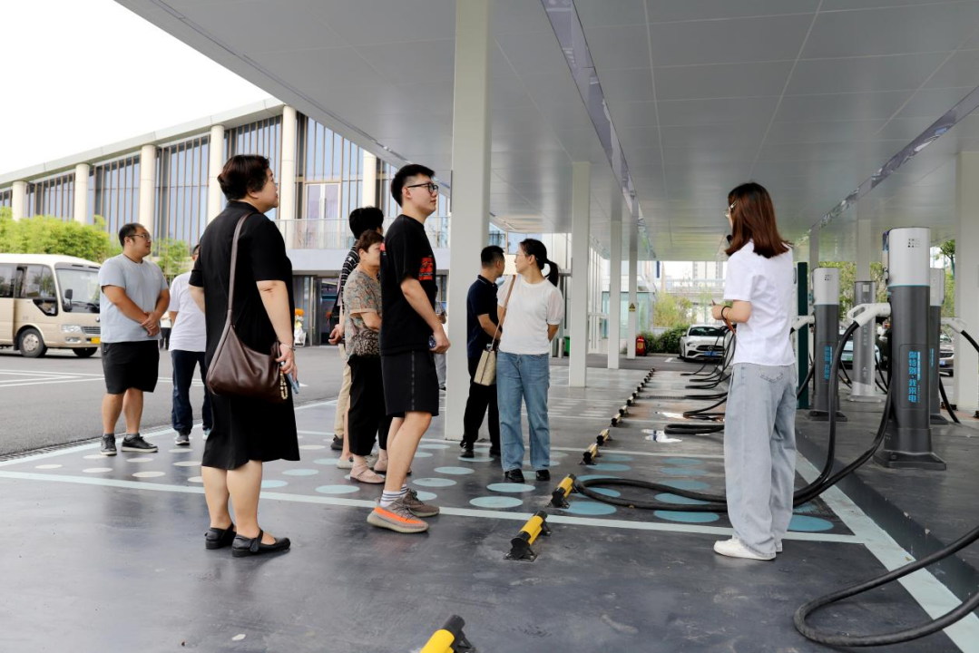 此外,讲解人员介绍了站内405平方米的光伏雨棚。该雨棚日均发电超600度,结合430kWh梯次储能系统,年减碳量预计达1.5万吨,构建起“阳光变绿电”的低碳生态。自7月投运以来,该站已服务新能源汽车2.5万辆次,充电量突破30万度。