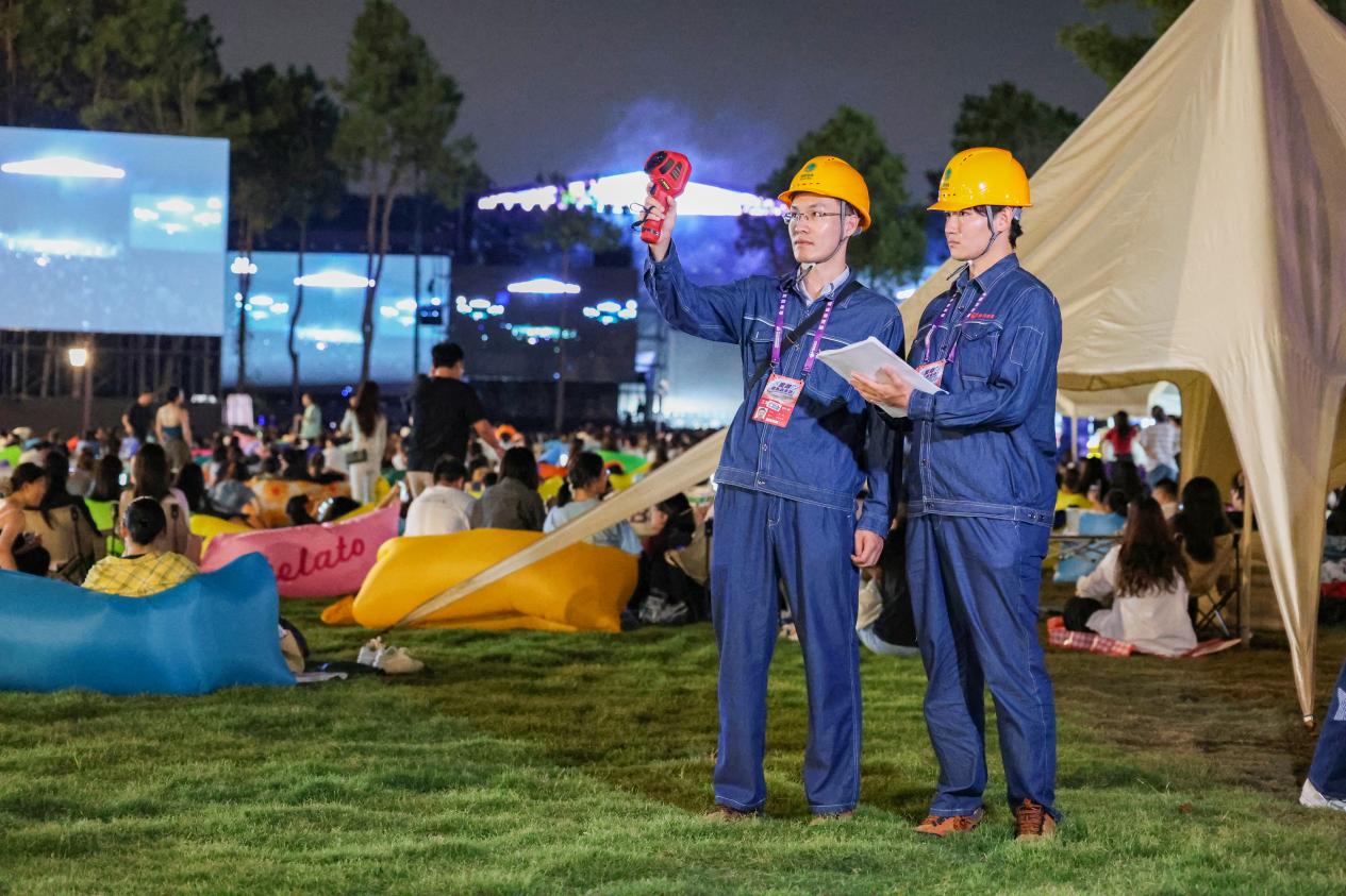 音乐节期间,国网绍兴柯桥供电分公司安排应急发电车现场随时待命,并组织精干抢修队伍24小时值守。纪检人员深入一线,对用电检查、线路测温、现场值守、应急响应等关键环节开展全过程监督,确保保电人员履职到位、服务规范、响应迅速。保电人员不间断巡视供电设备,对关键连接点进行红外测温,实时监控负荷变化,确保供电设备处于最佳运行状态。(童程/文 国网绍兴柯桥供电分公司/供图)
