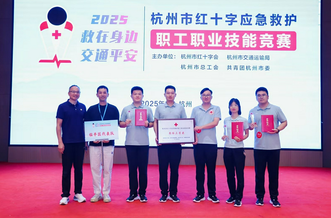 为纪念第26个“世界急救日”,深入贯彻落实“救在身边·交通救护伴行”专项行动要求,进一步提升交通运输行业从业人员应急救护能力,近日,2025年杭州市红十字应急救护职工职业技能竞赛在杭州市临平区落幕。
