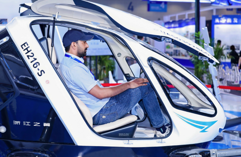 从海拔600多米的百丈漈天顶湖起降场垂直起飞,俯瞰脚下,尽是浙江省文成县连绵起伏的山脉和飞流直下的瀑布……在数智出行展区,浙江之翼通航有限公司带来的电动垂直起降飞行器,正是低空经济从“概念蓝图”走向“场景化应用”的一个缩影。