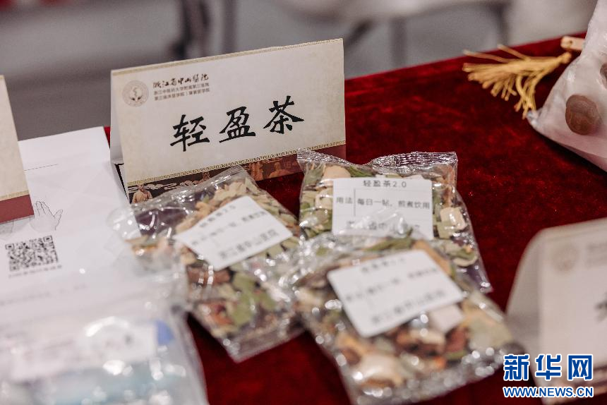 2025年9月10日,中医药科技成果交流会暨中医药创新成果展览会上的中药版茶饮。新华网发(周云凯摄)