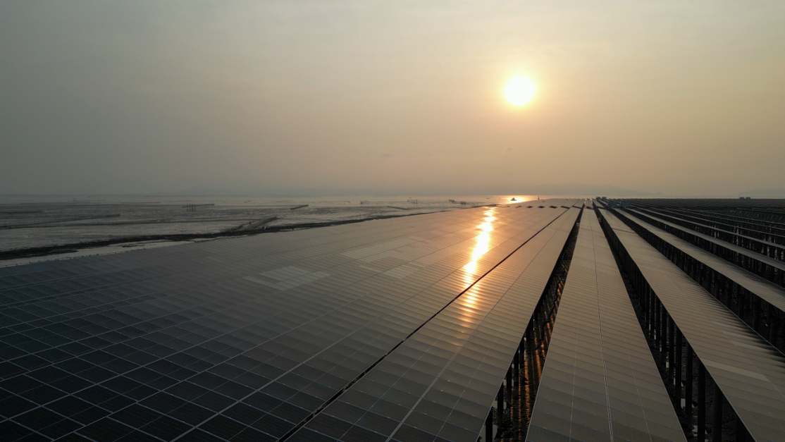 乐清湾的海面上,2918亩的光伏板整齐排列,板下养殖区的鱼虾正欢快游动。这个由分行投放5亿元贷款支持的正泰集团温州亨泰渔光互补项目,是浙江省“千项万亿”工程之一。并网后,年平均发电量可达3.2亿千瓦时,满足超8万户居民一年的用电需求。与相同发电量的火电相比,每年可为国家节省标准煤9.82万吨,减少二氧化碳排放26.98万吨。同时,项目还为当地渔民提供了1000多个渔业养殖岗位,使得每亩滩涂每年能够额外产生约3000元的渔业产值,实现了渔业生产的持续发展与节能减排目标的双重推进。