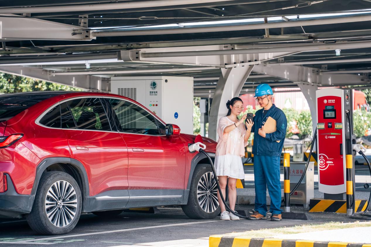 国网杭州供电公司运维人员为车主解答充电使用疑惑。汤晨 摄