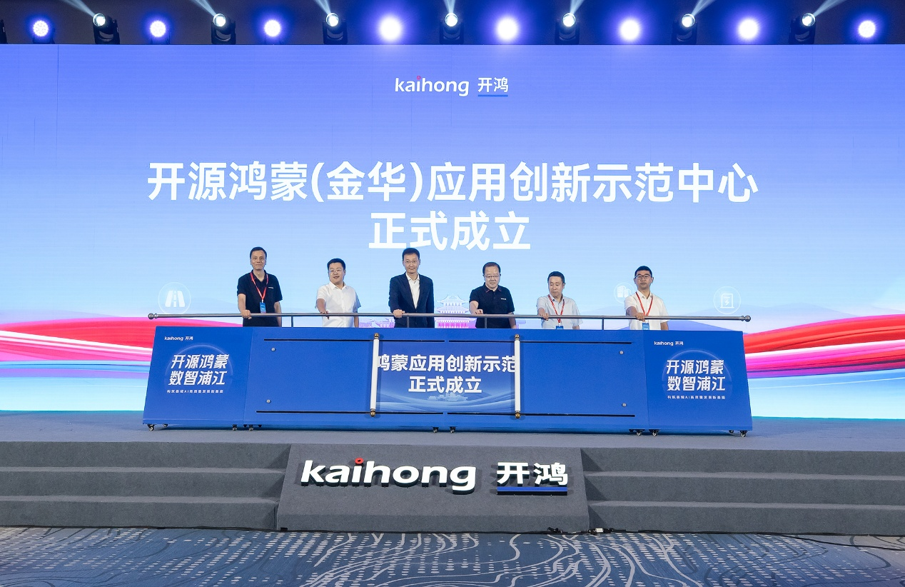 10月11日,浦江开源鸿蒙生态大会在浙江省金华市浦江县举行。活动现场,开源鸿蒙(金华)应用创新示范中心揭牌。这是在开放原子开源基金会指导下,深圳开鸿数字产业发展有限公司(以下简称“深开鸿”)在全国范围内首个落地县域的应用创新示范中心。